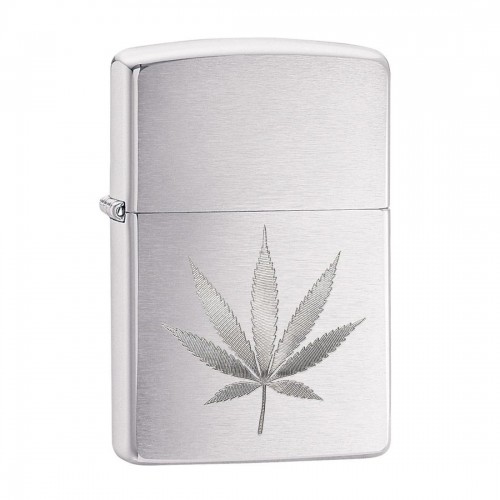 Αναπτήρας Zippo Brushed Chrome με σχέδιο φύλλου μαριχουάνας.